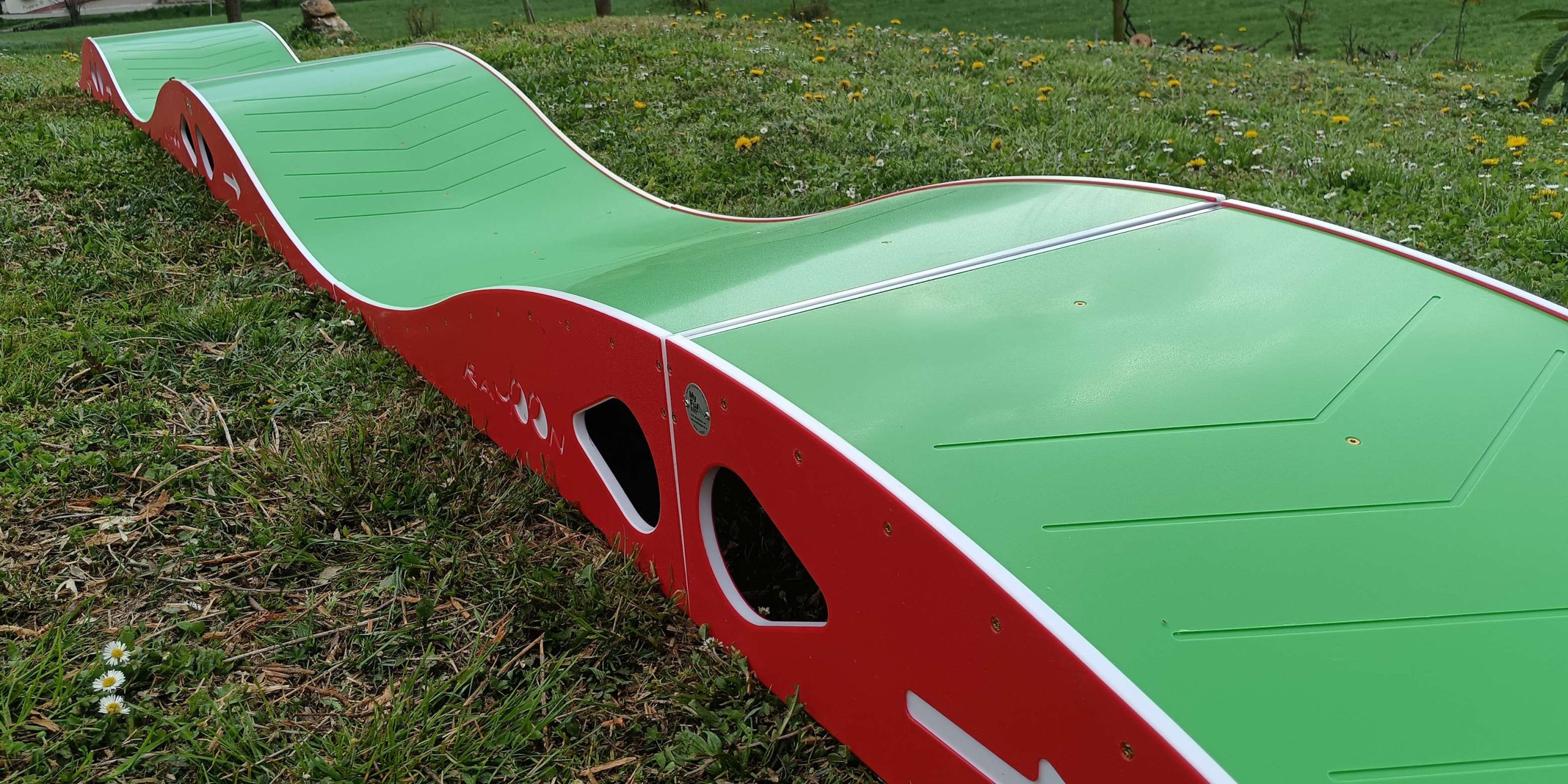 La nostra Minipump Evo, è a tutti gli effetti una Pump track modulare, ed è la struttura principale del percorso. Però a differenza delle pump track tradizionali, è dimensionata per essere un esercizio facile e veramente alla portata di tutti.